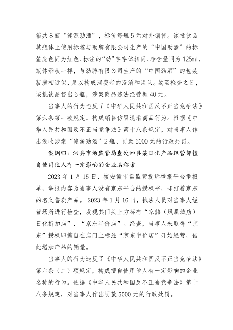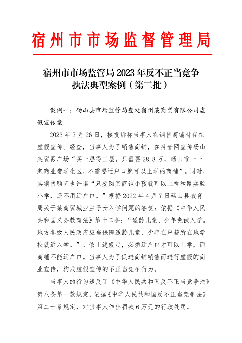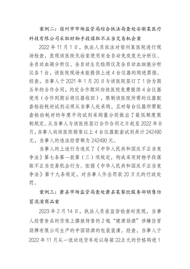 宿州市市场监管局2023年反不正当竞争执法典型案例(第二批)