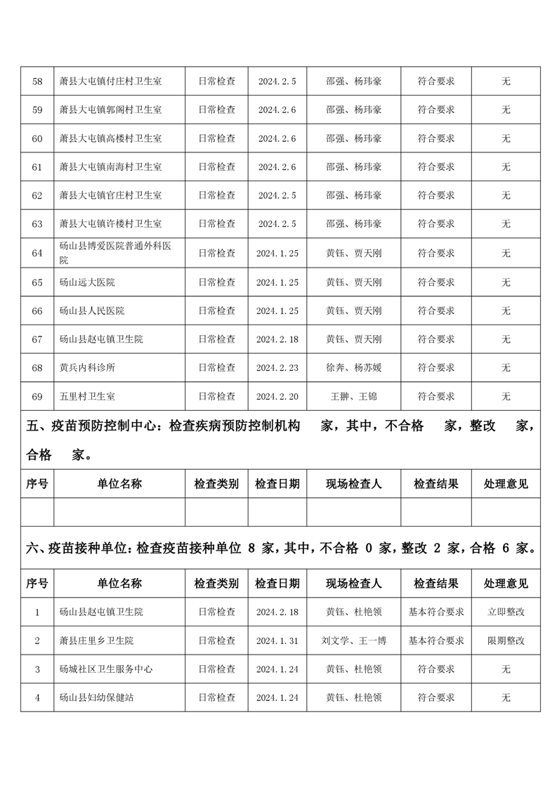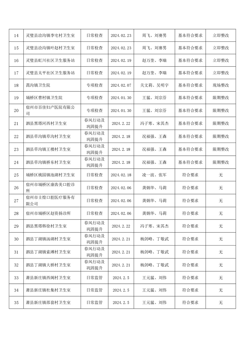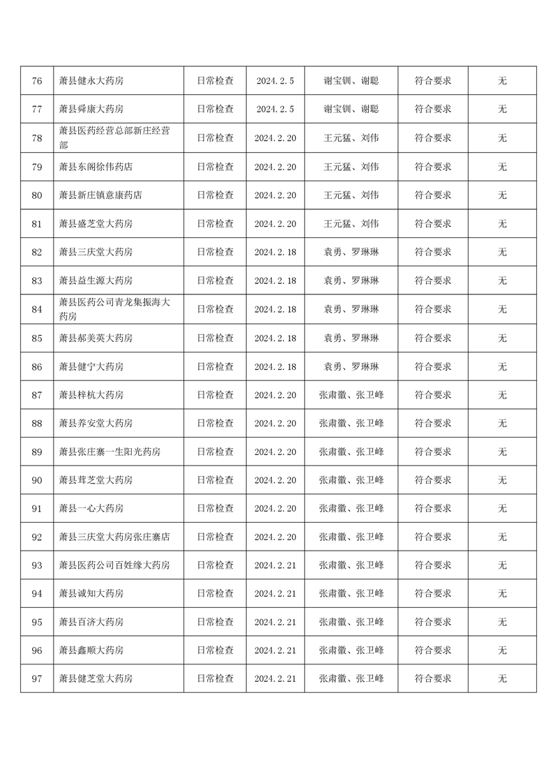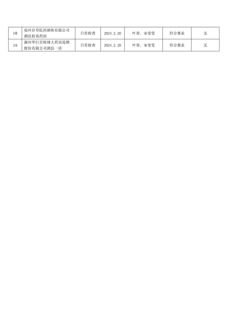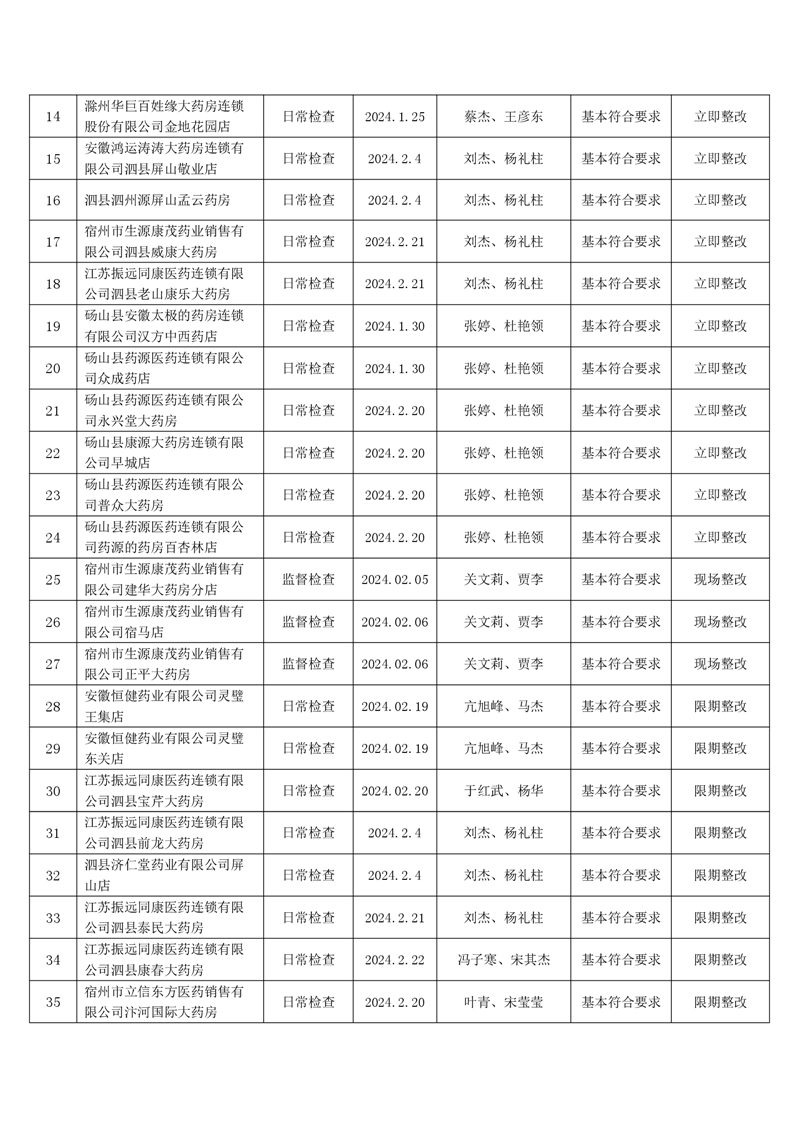 宿州市2024年2月份药品流通监督检查情况表