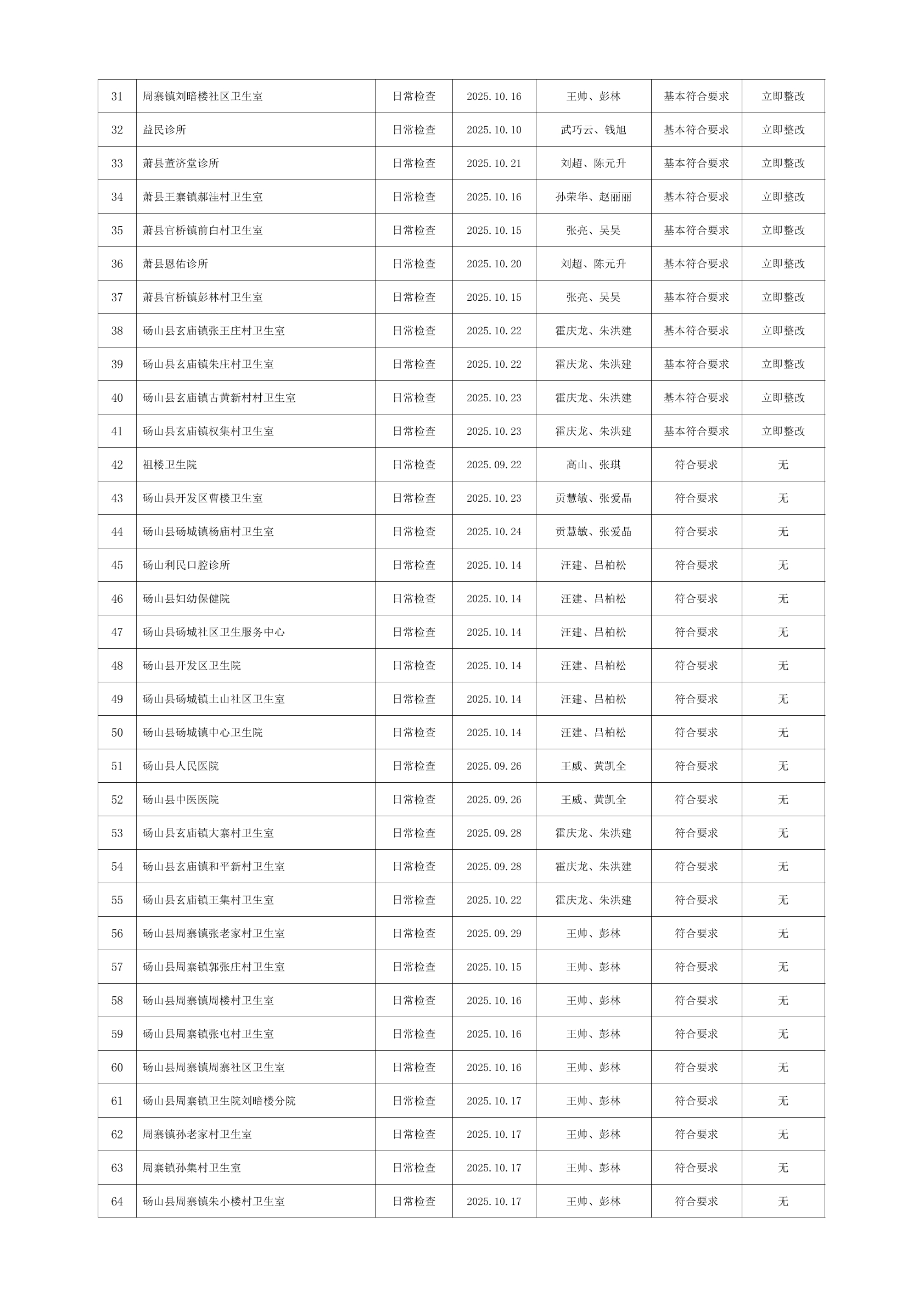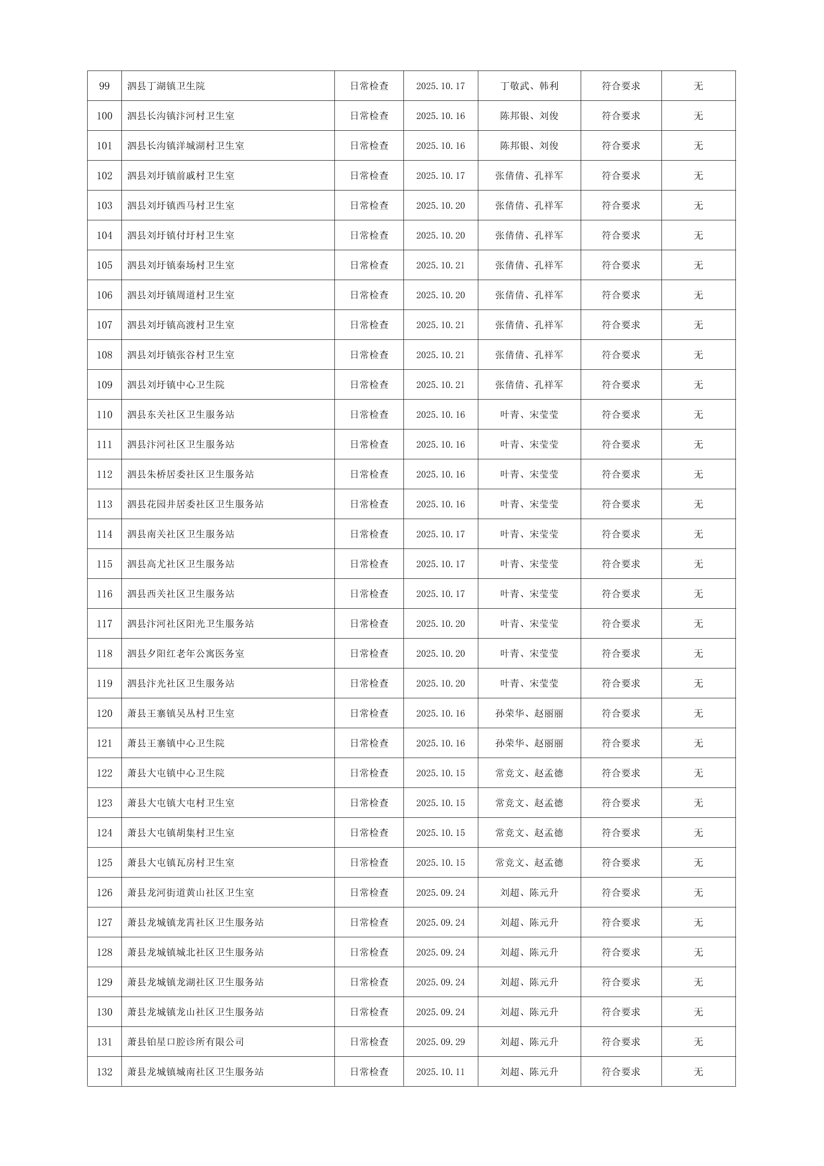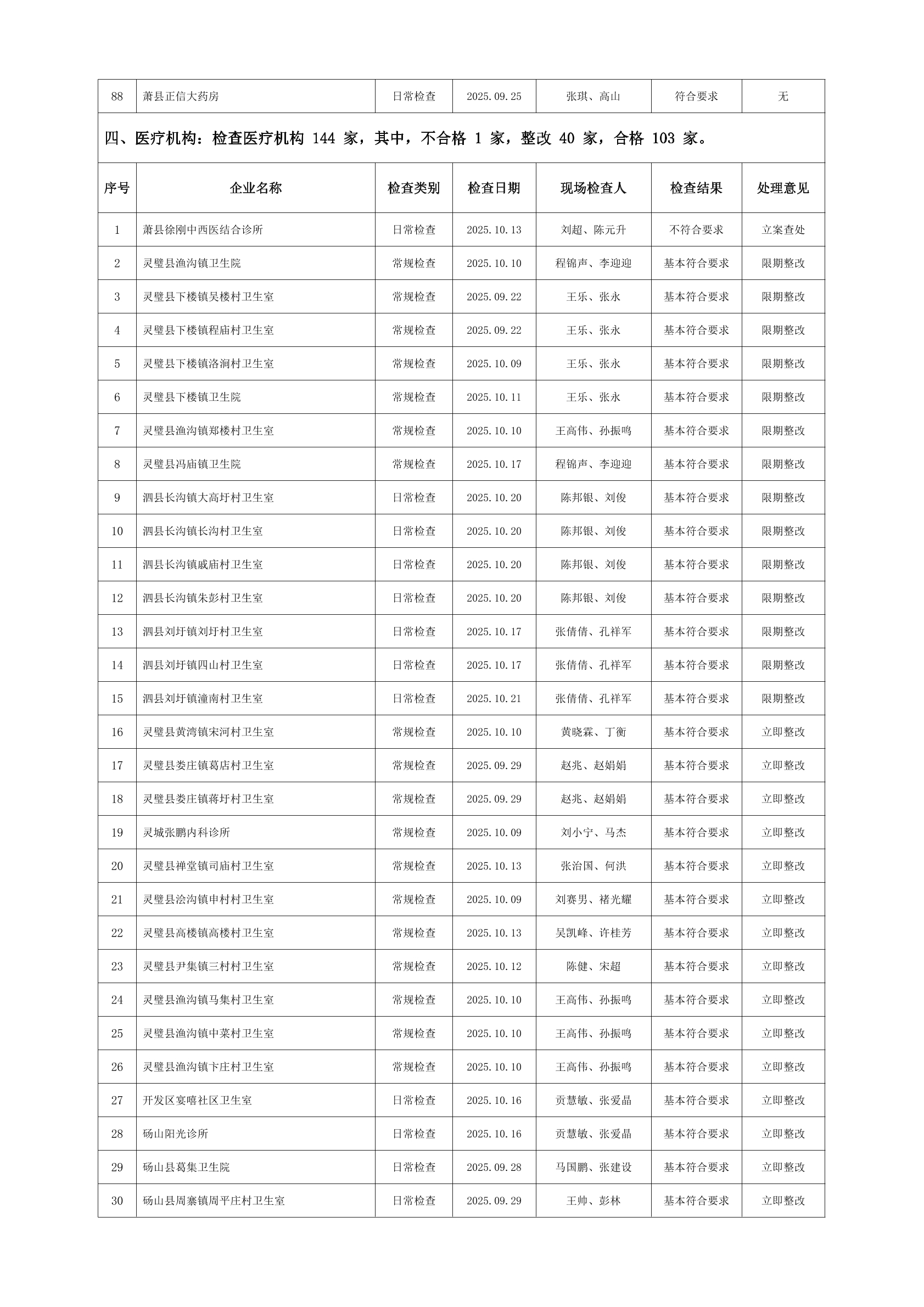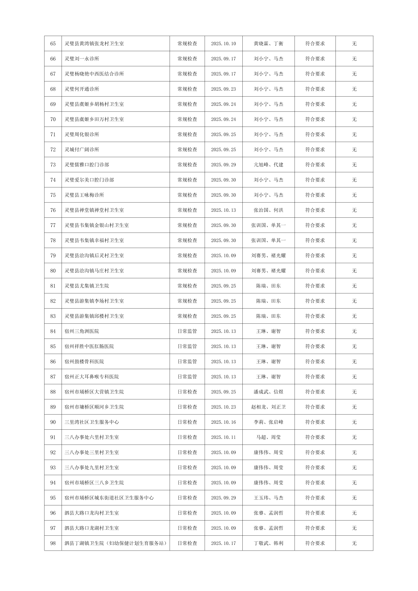 宿州市2025年10月份药品流通监督检查情况表