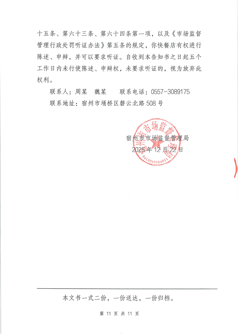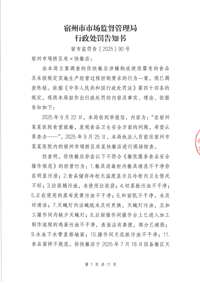 因本局与你快餐店无法取得联系,现依法对你快餐店公告送达《行政处罚告知书》(宿市监罚告〔2025〕90号),限你快餐店自公告之日起三十日内到宿州市市场监督管理局领取本告知书,逾期不领取视为送达。