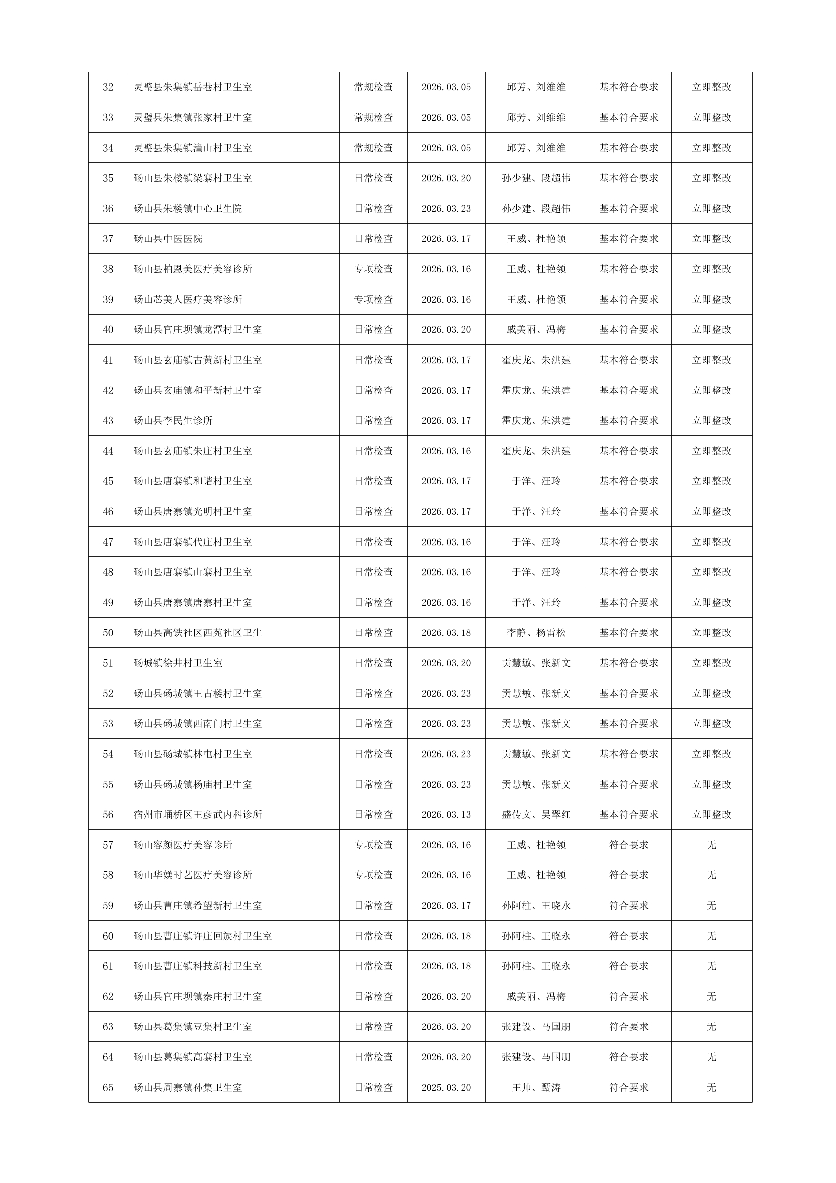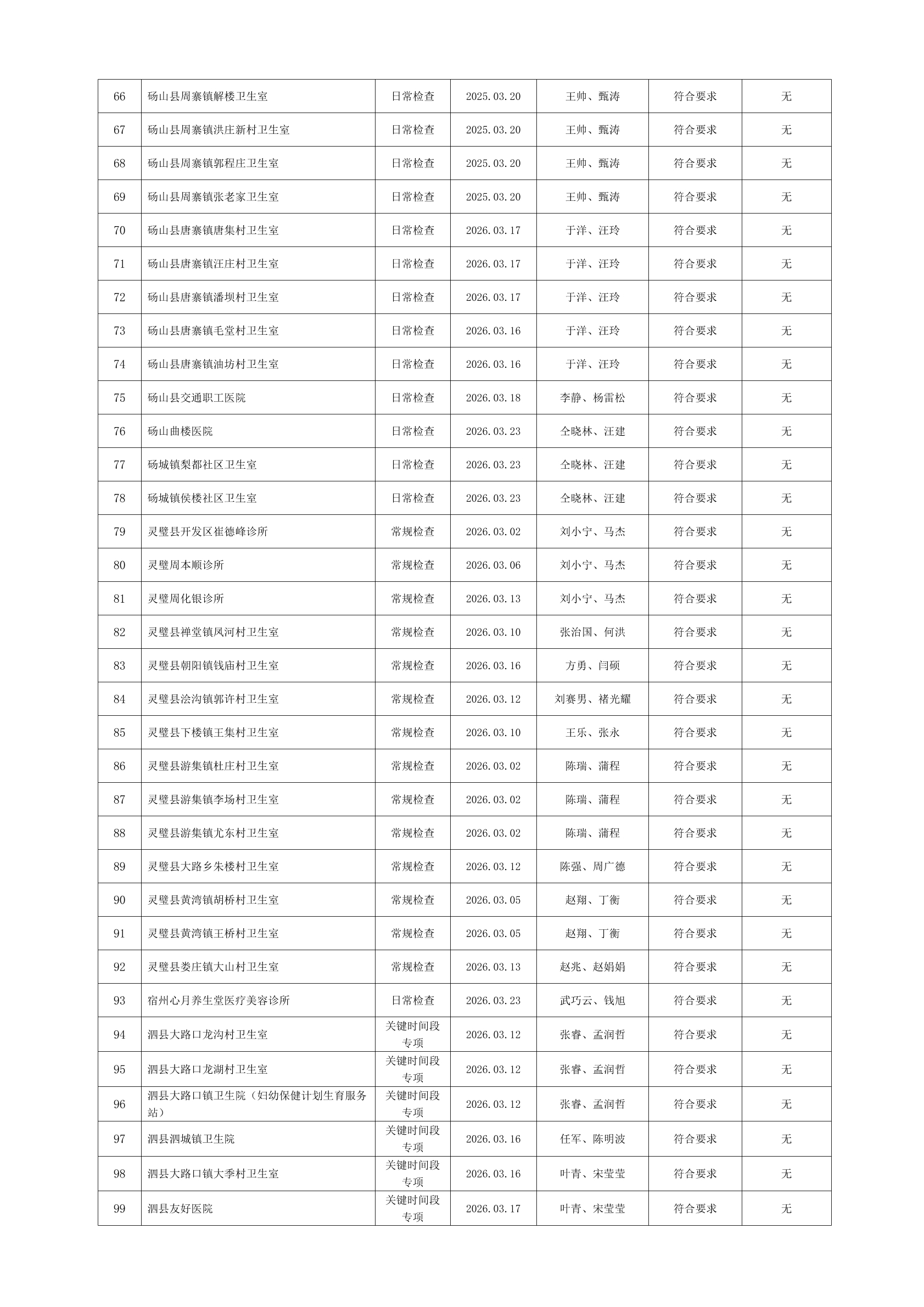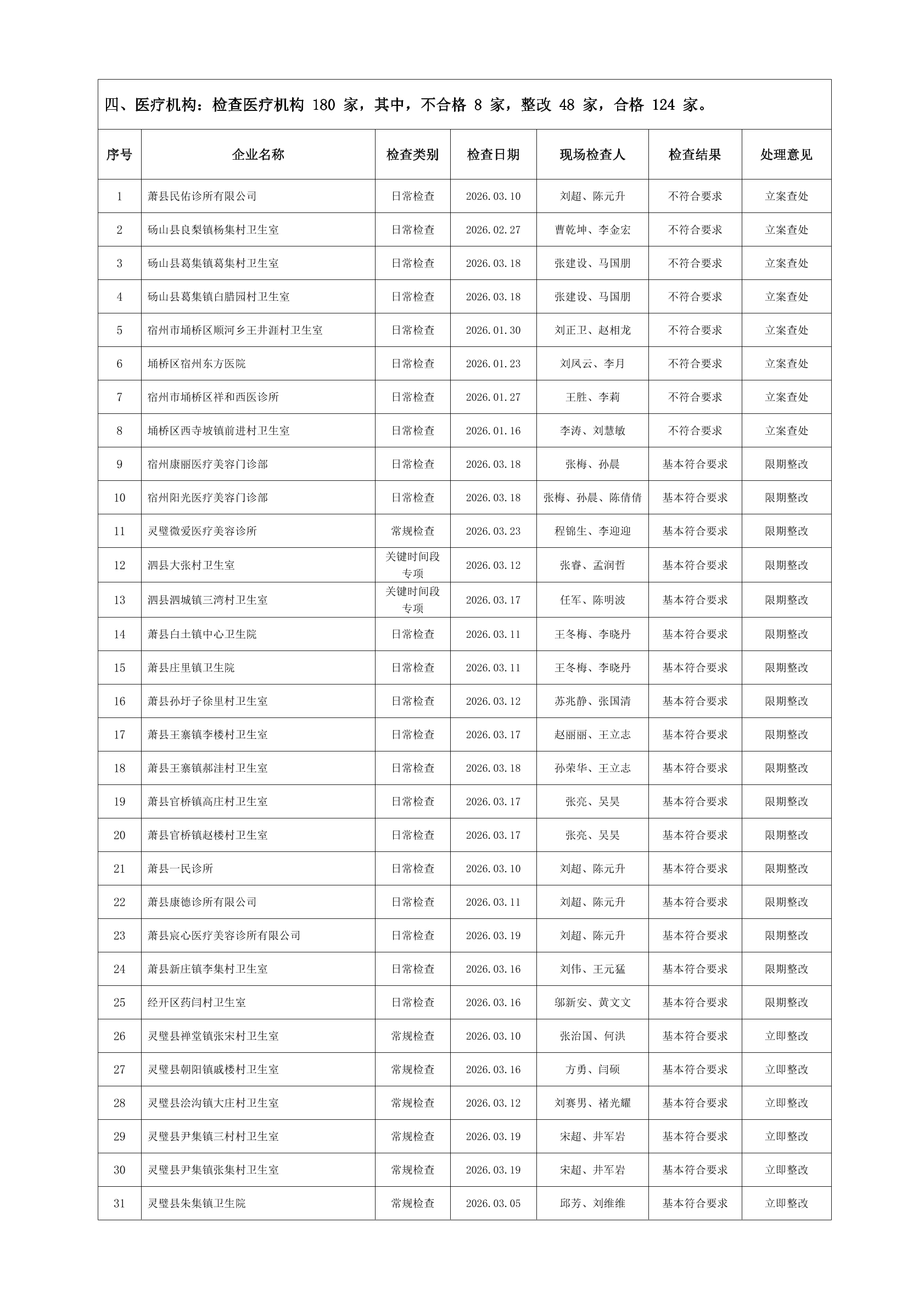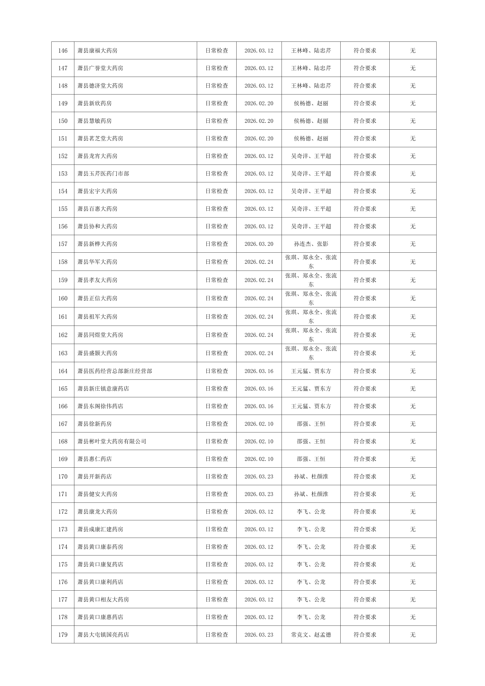 宿州市2026年3月份药品流通监督检查情况表